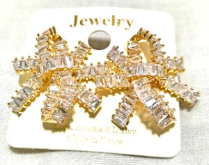 リボンの結び目部分にあしらわれたジルコニアが、上品なアクセントになっています。